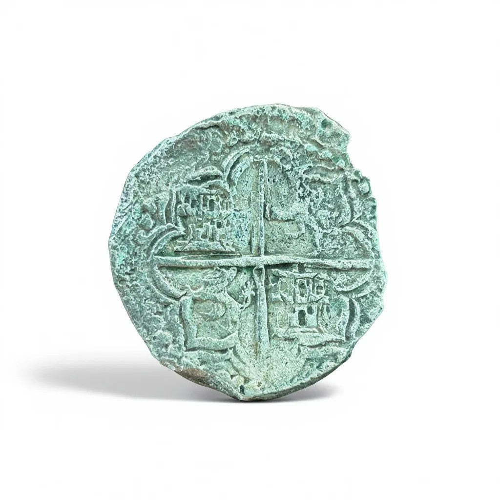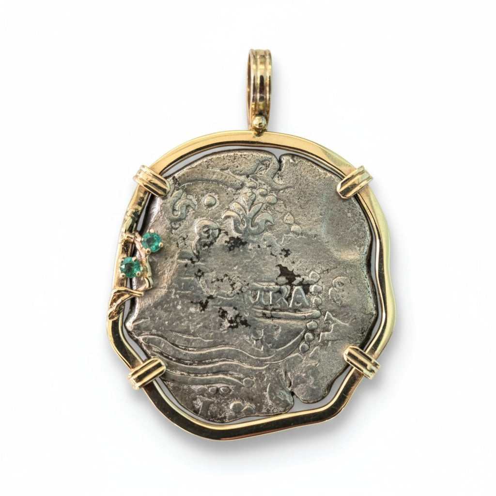 Shipwreck:Ā Santa Maria de la Consolacion Dated:Ā 1679 Reign:Ā Carlos II Assayer:Ā Antonio de Erqueta āEā Mint:Ā Potosi Denomination:Ā 1 Reales Weight: 2.20 gm Mount: Ā SterlingĀ SilverĀ Mount History:Ā The Santa Maria de la Consolacion...