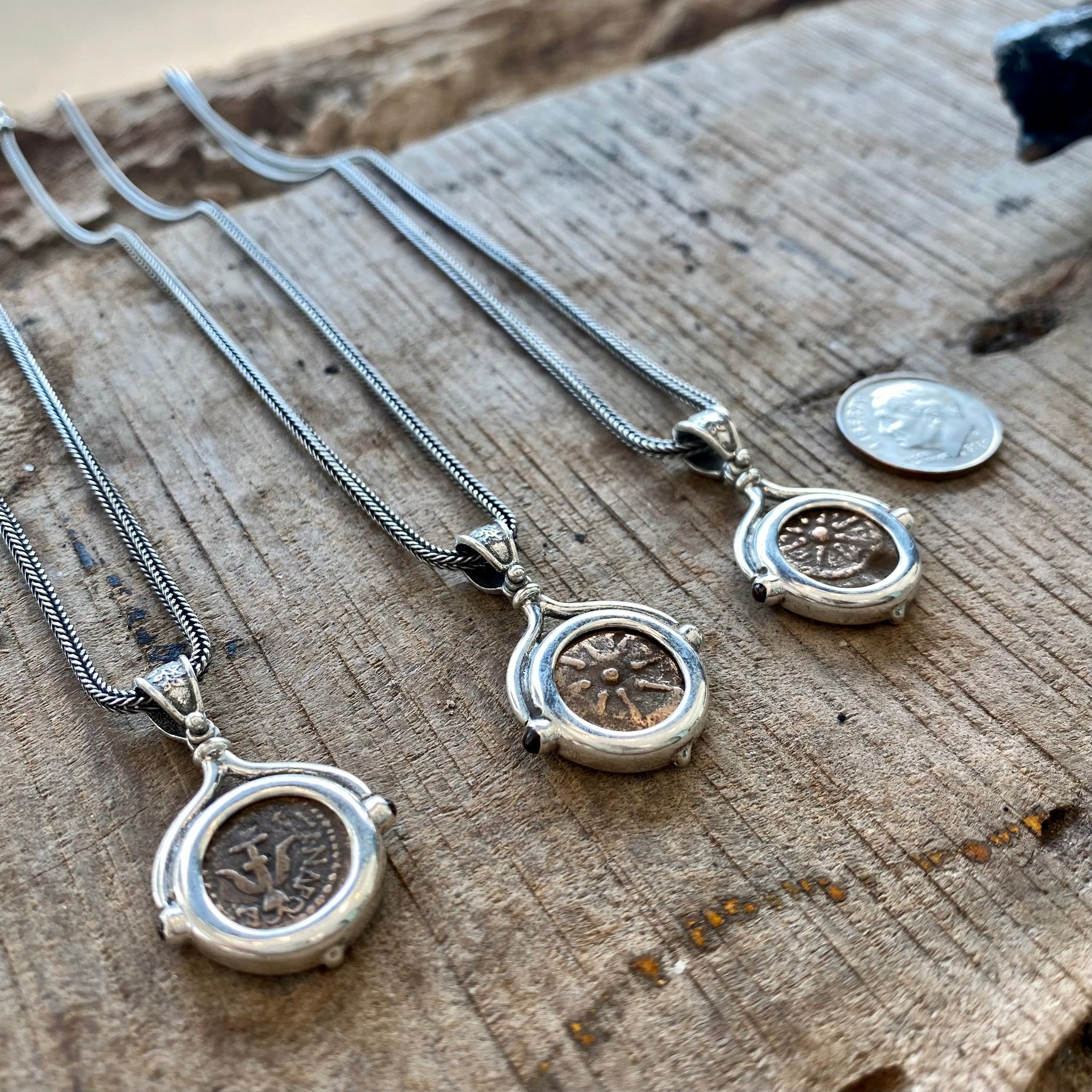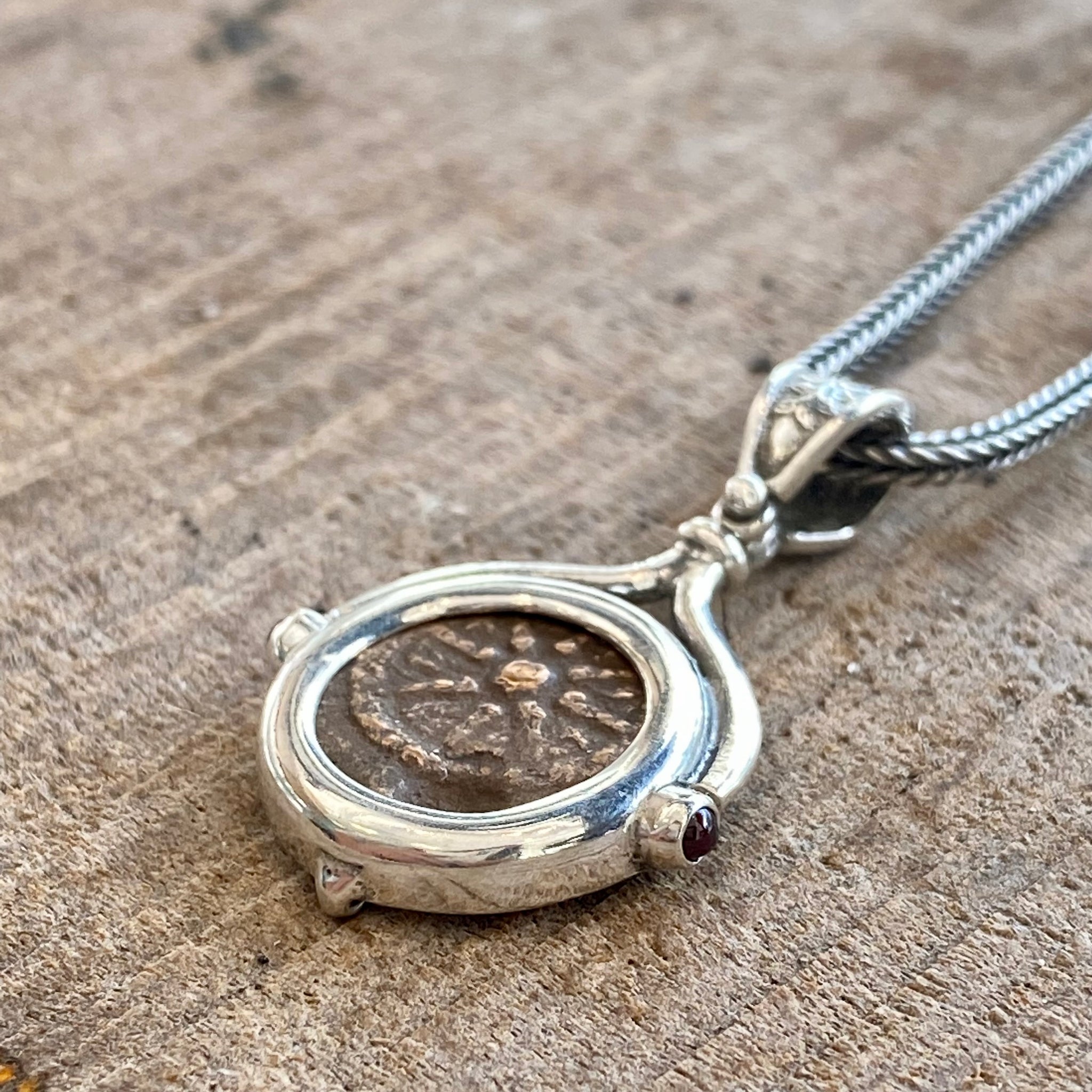 "2500-Year-old Biblical Coin minted in Judea during the Reign of Alexander Janus" Denomination: Bronze Prutah Date: 103-76 BC Coin Description: Star and Inverted Anchor Mount: Sterling Silver...