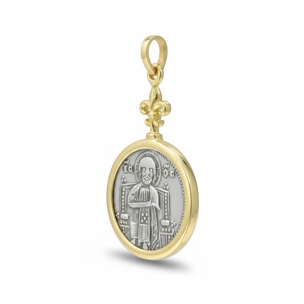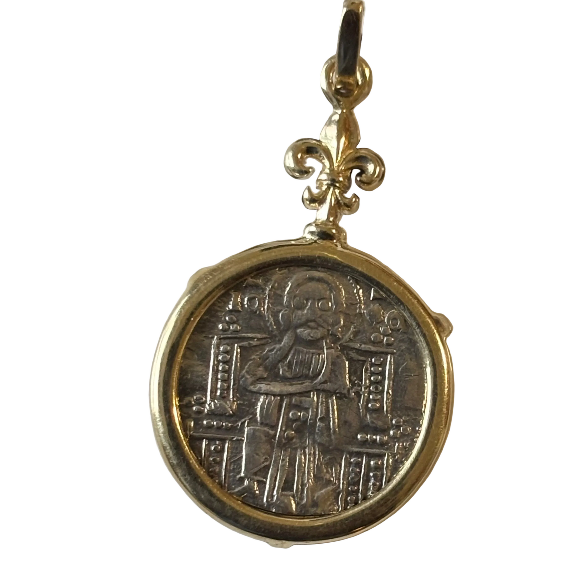 Mint: Constantinople (Modern day Istanbul, Turkey) Date: Circa (969- 1092) AD Mount: Sterling Silver Denomination: Follis Description: Class A anonymous follis, Constantinople. Obverse: IC-XC to right and left...