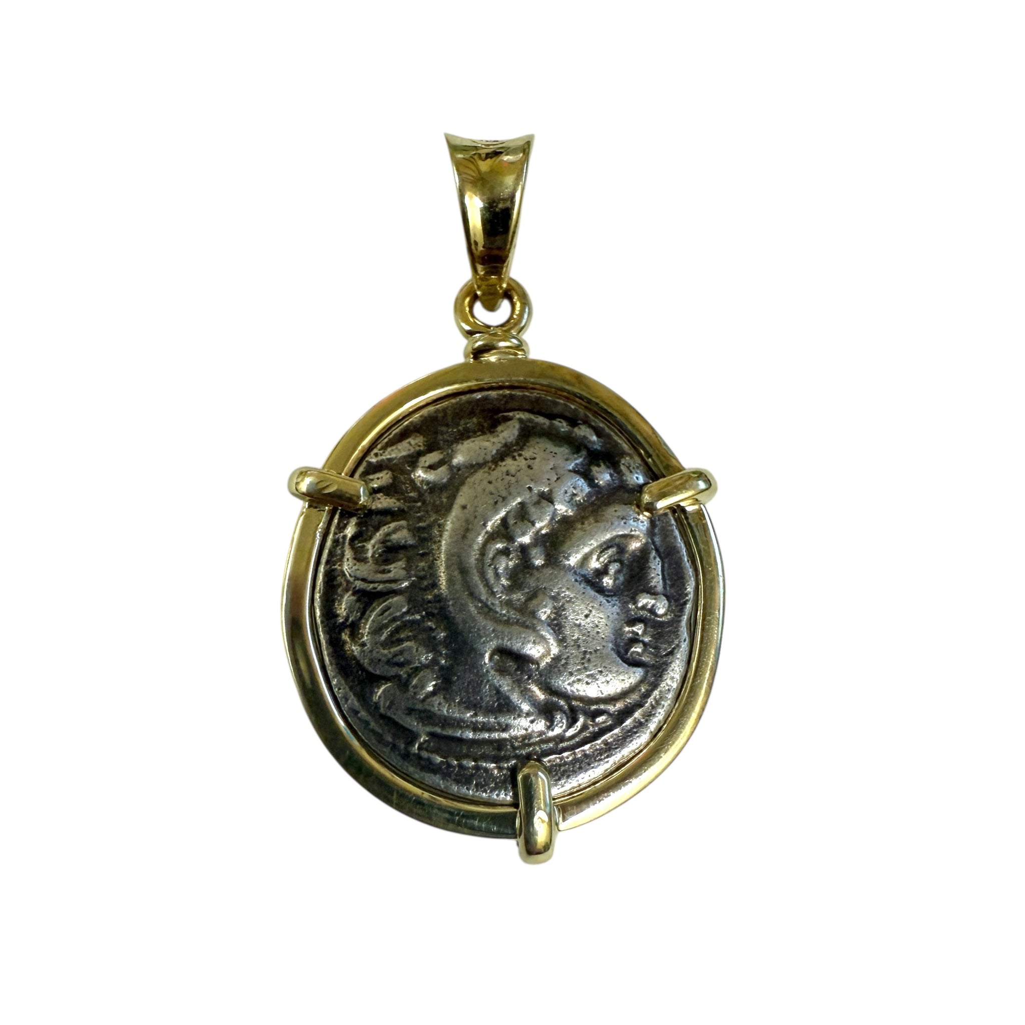 Denomination: AR Drachm (17mm, 12h) Mint: Macedonia Kingdom Mount: Sterling Silver with 14K prongs and bale ...