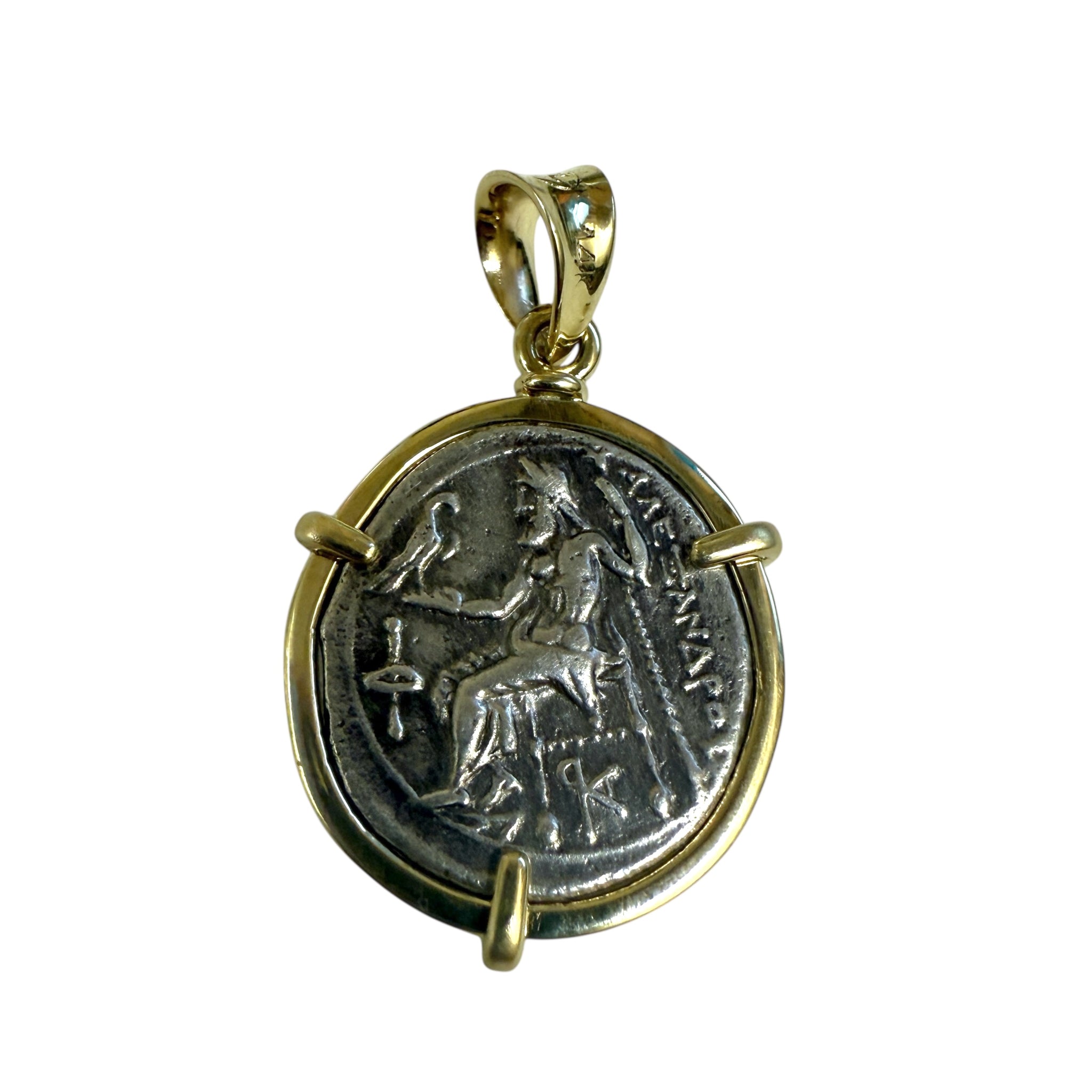Denomination: AR Drachm (17mm, 12h) Mint: Macedonia Kingdom Mount: 14K gold prongs and bale ...