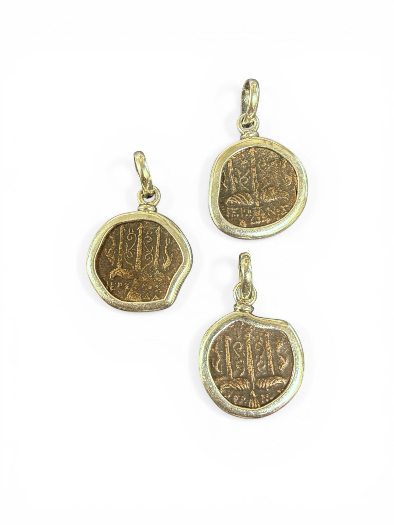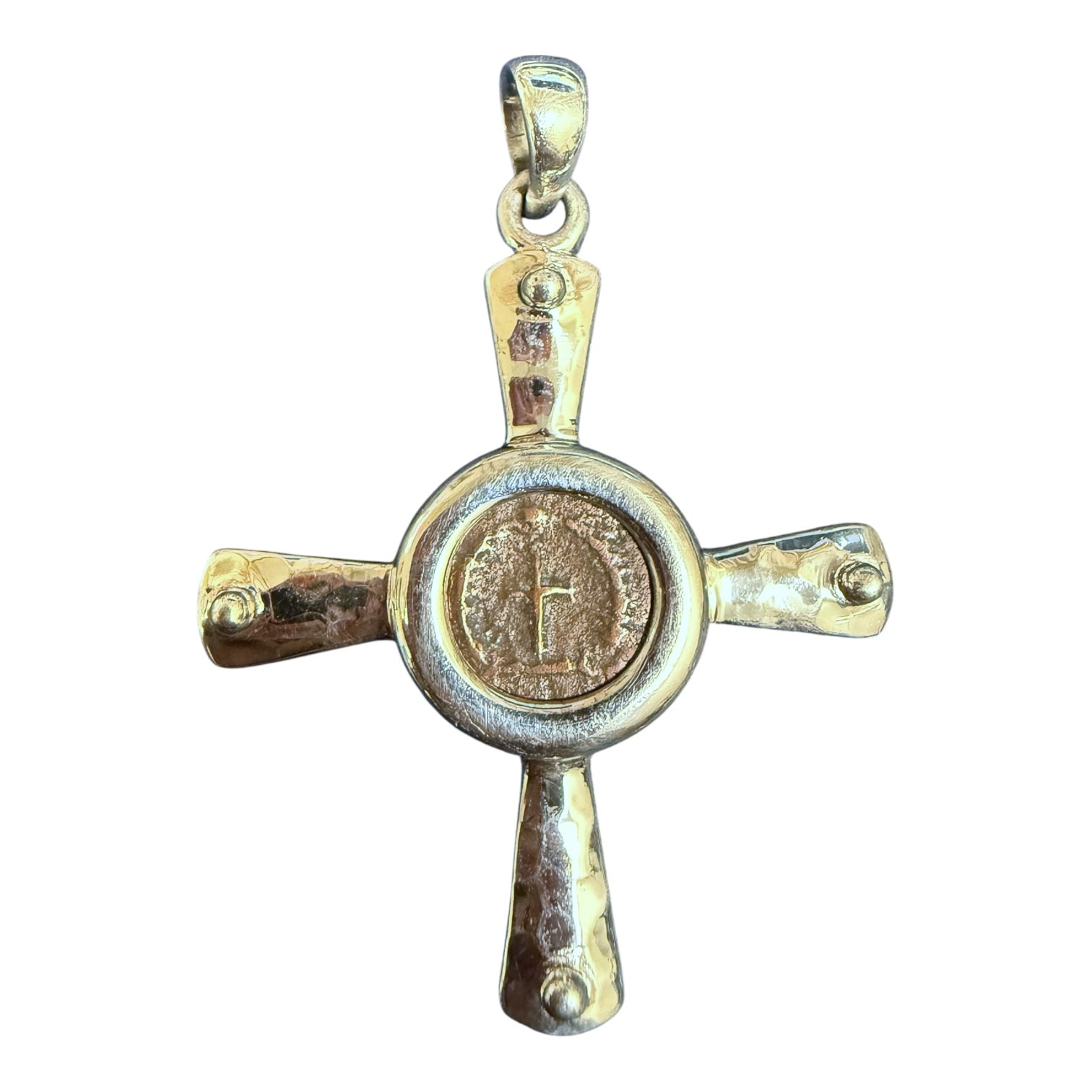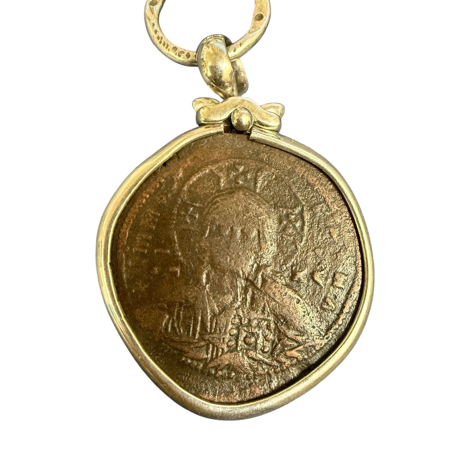 Mint: Constantinople (Modern day Istanbul, Turkey) Date: Circa (969- 1092) AD Mount: Sterling Silver Denomination: Follis Description: Class A anonymous follis, Constantinople. Obverse: IC-XC to right and left...