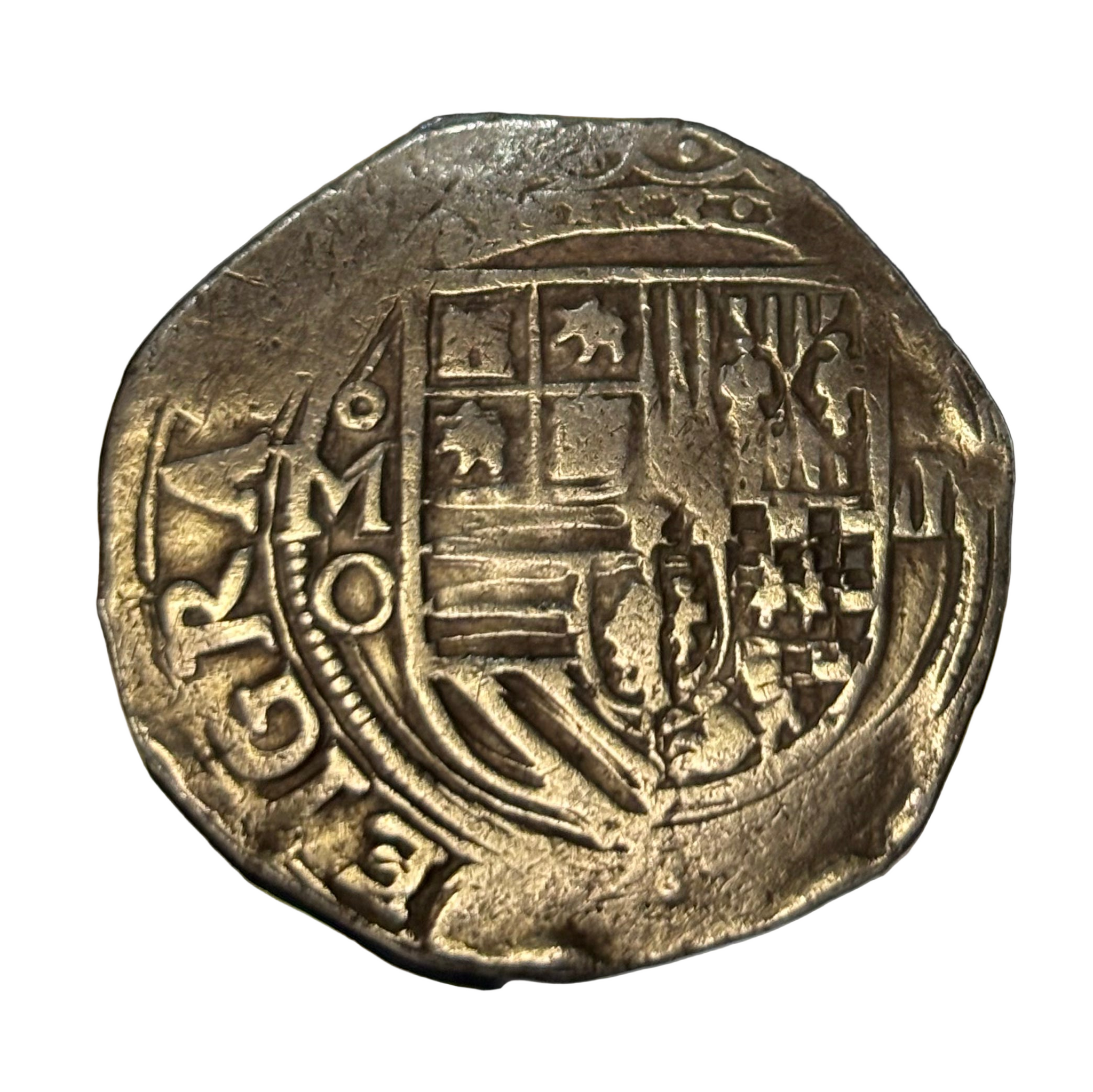 Denomination: 4 Reales Grade: Grade (One) 1 Mint: Mexico City Assayer: "O" Luis de Ornate (1579 - 1589) Reign: Philip II Weight: 13.48 gm Date: Never...
