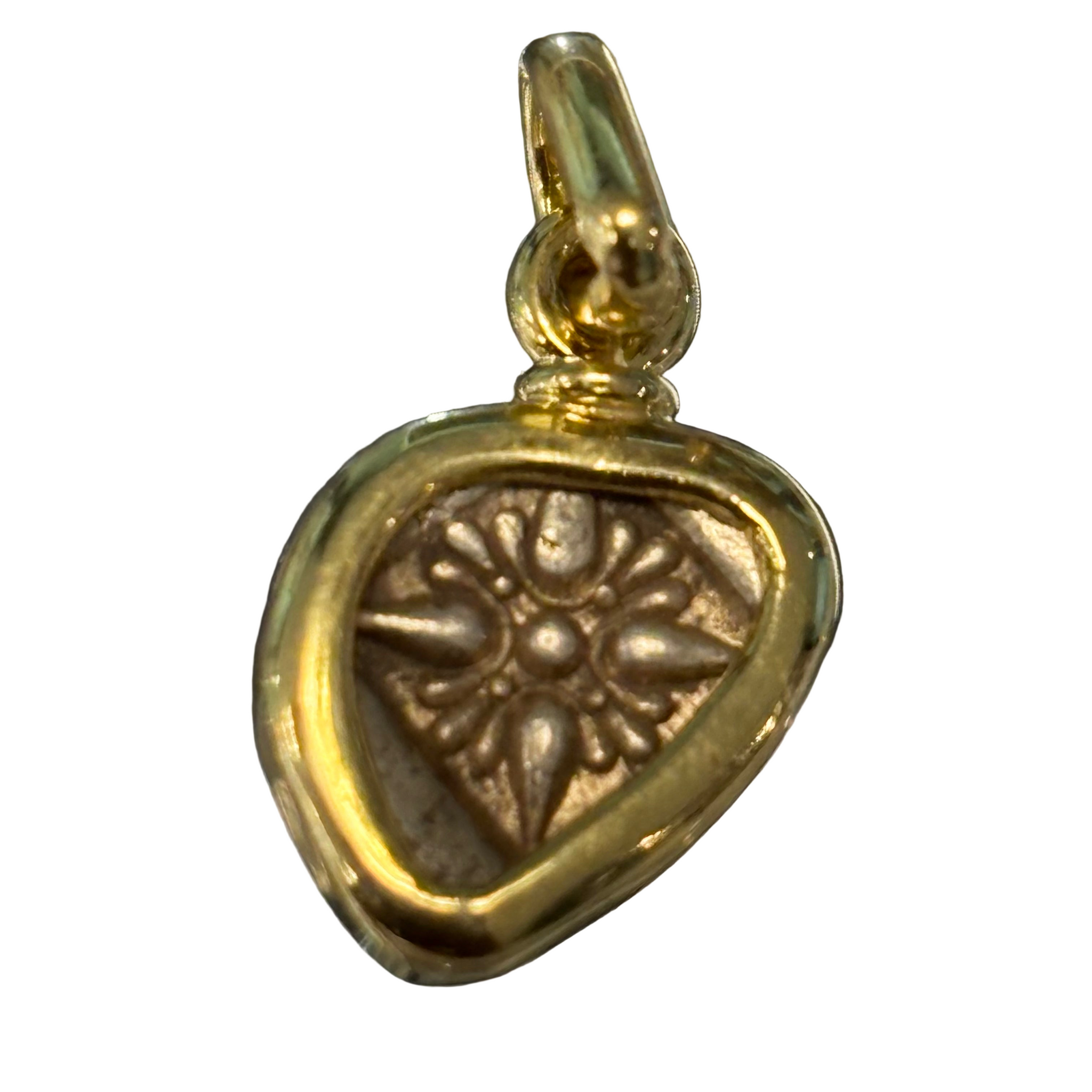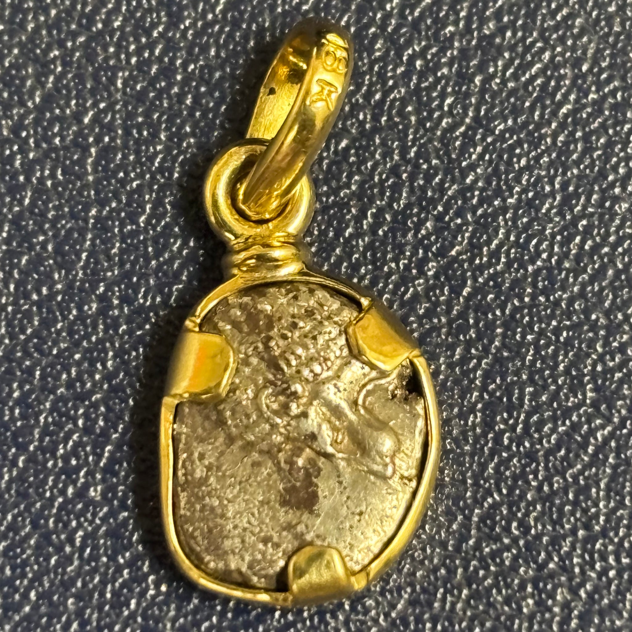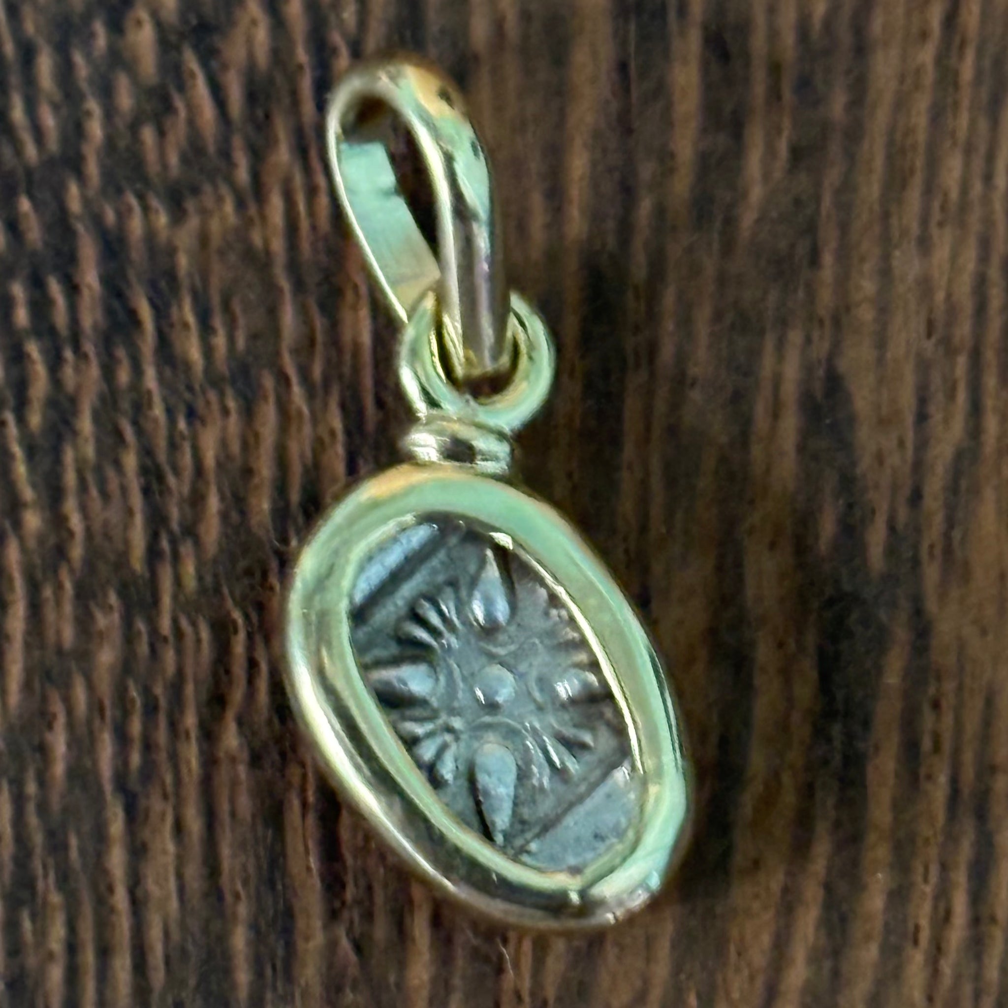 Denomination: AR Drachma Date: Circa 57-15 BCE Mint: Sakas Empire Reign: Azes II Mount: 18K gold Bale w/ Sterling Silver Ring...