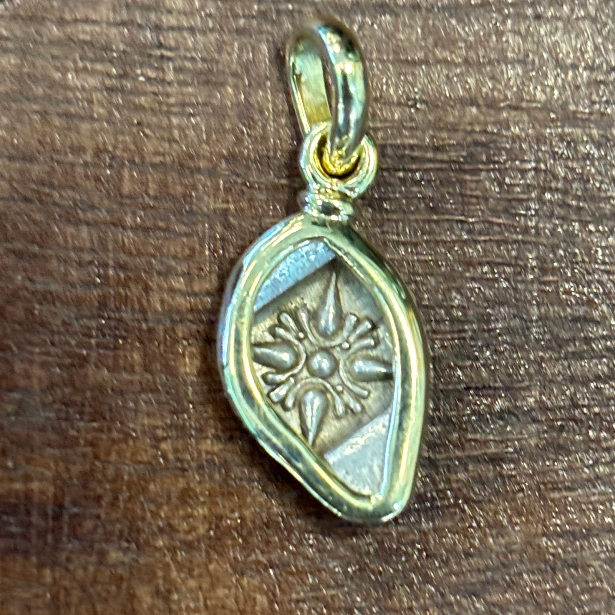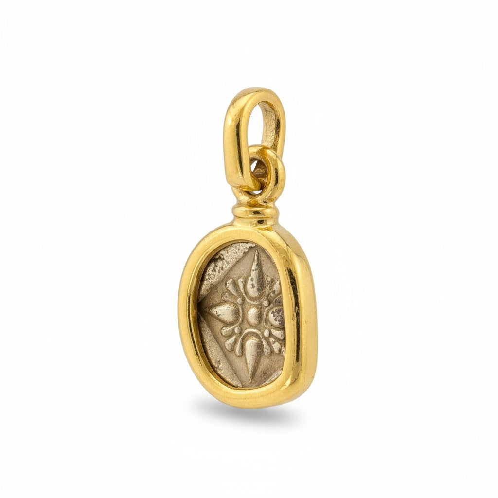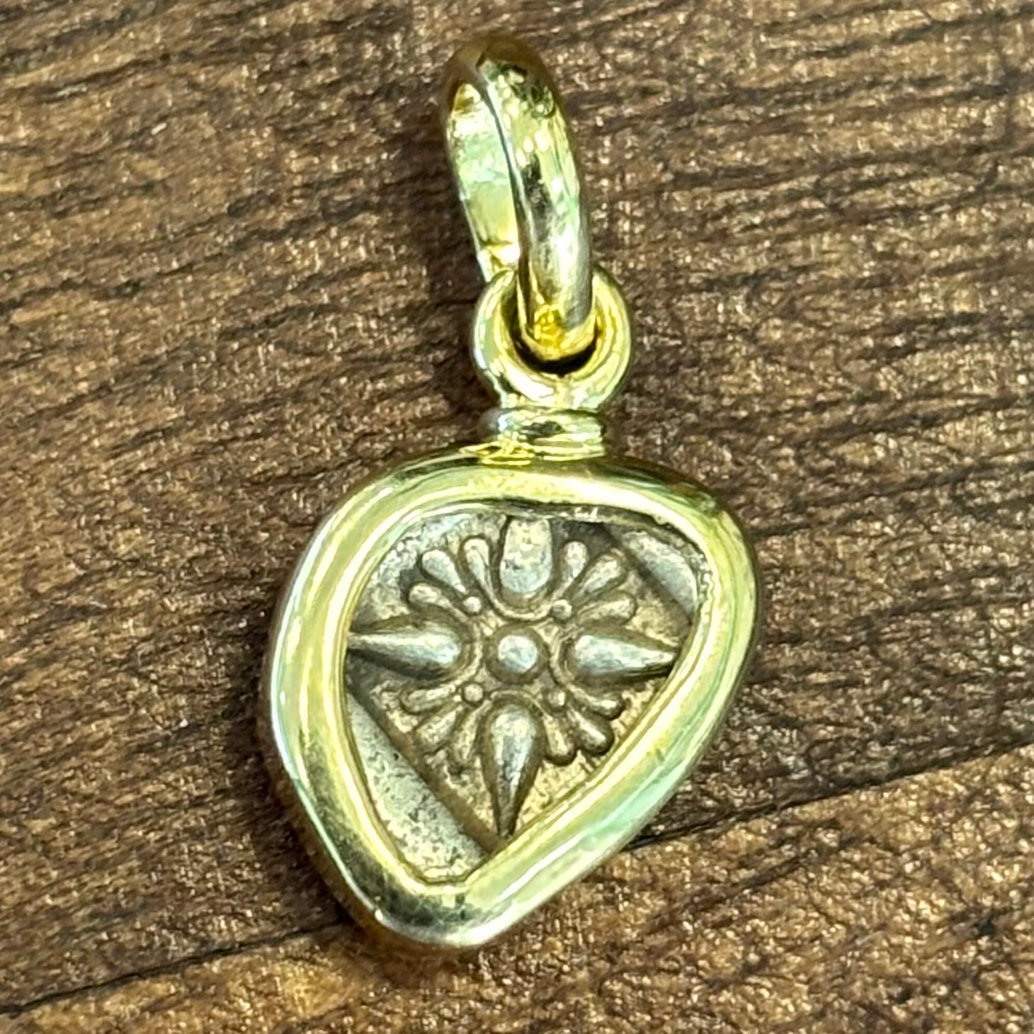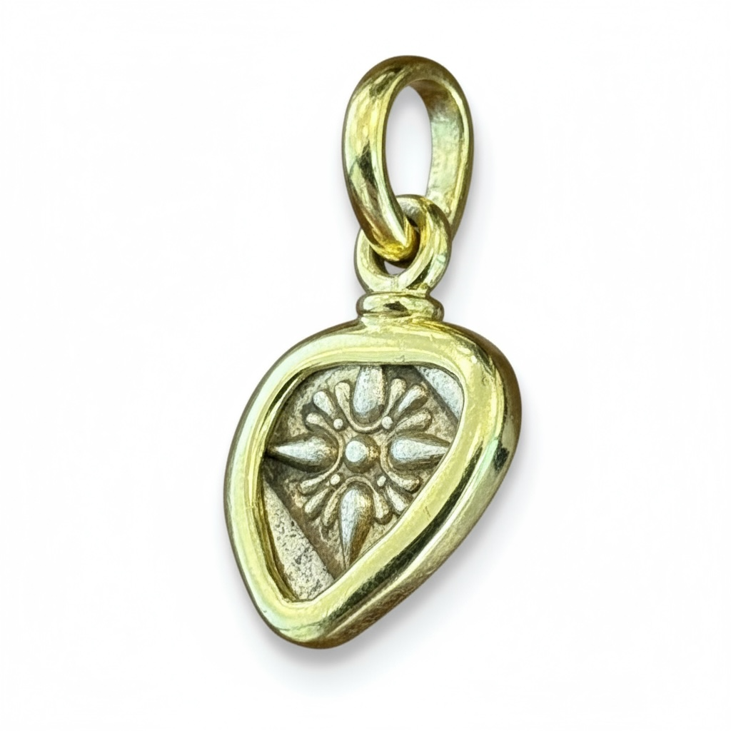 Denomination: AR Drachma Date: Circa 57-15 BCE Mint: Sakas Empire Reign: Azes II Mount: 18K gold Bale w/ Sterling Silver Ring...