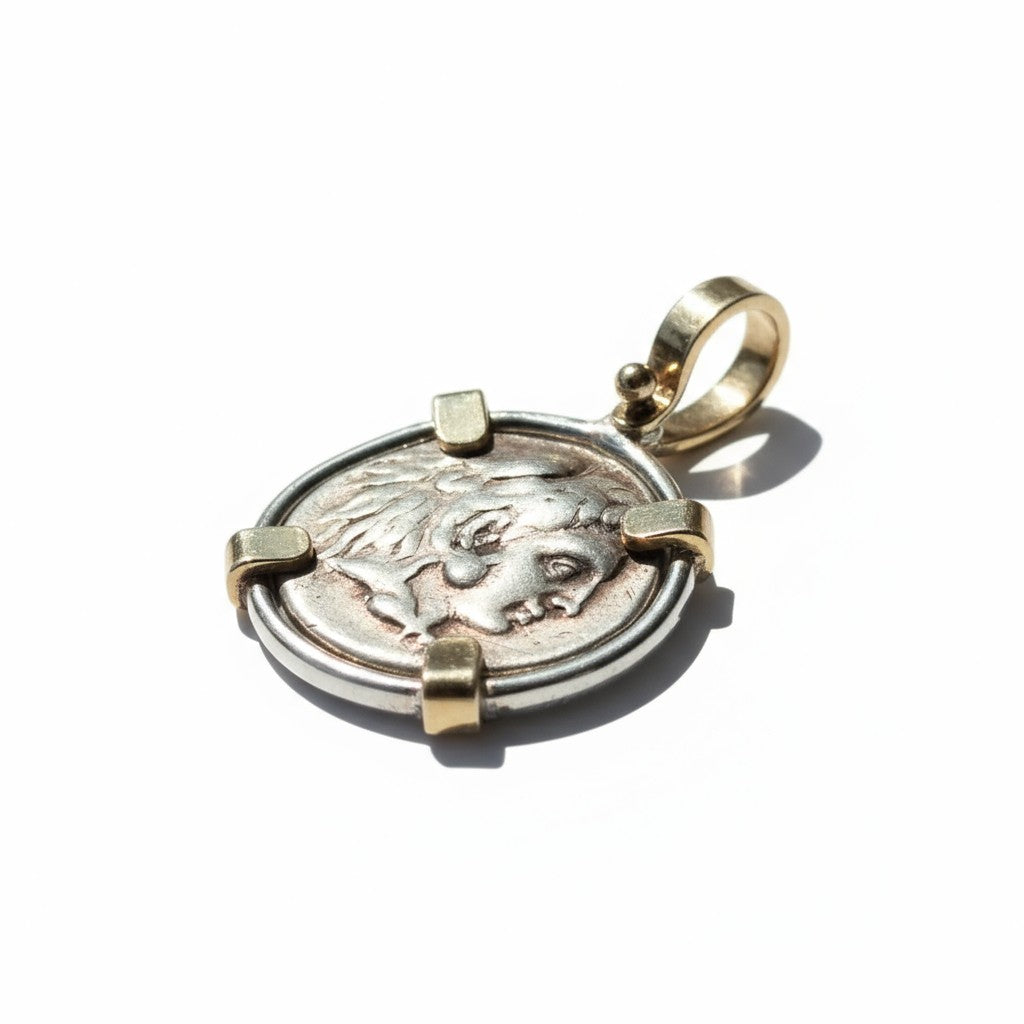 Denomination: AR Drachm (17mm, 12h) Mint: Macedonia Kingdom Mount: Sterling Silver with 14K prongs and bale ...