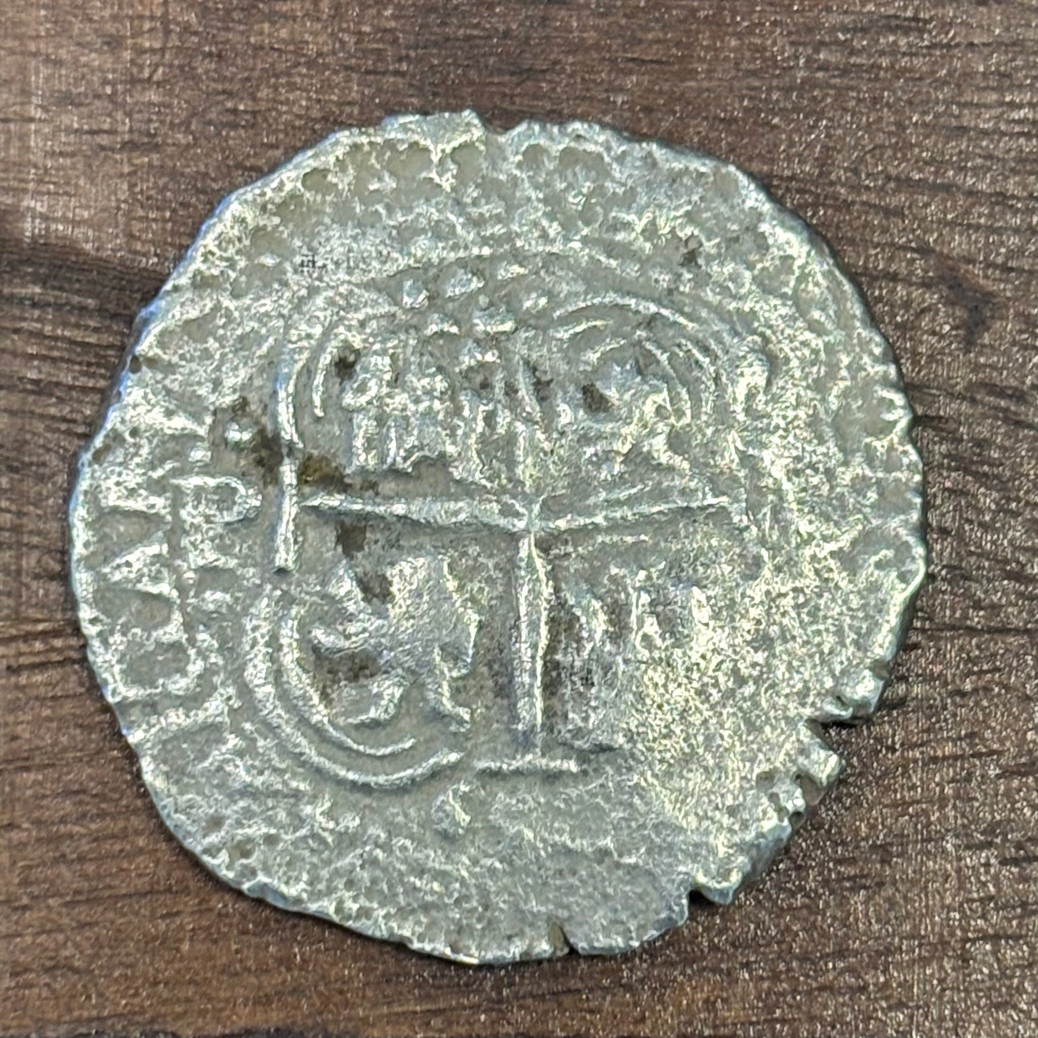 Denomination: 8 Reales Date: Not Visible Mint: Mexico Weight: 23.75 gm Assayer: "P" 1623-1665 - Coins found on the Concepcion Description: Obverse: Clearly struck Florenzada cross....