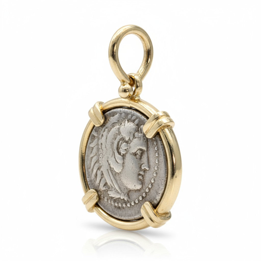 Denomination: AR Drachm Mint: Macedonia Kingdom Mount: 14K prongs and bale Date: Circa (336-323) BC...