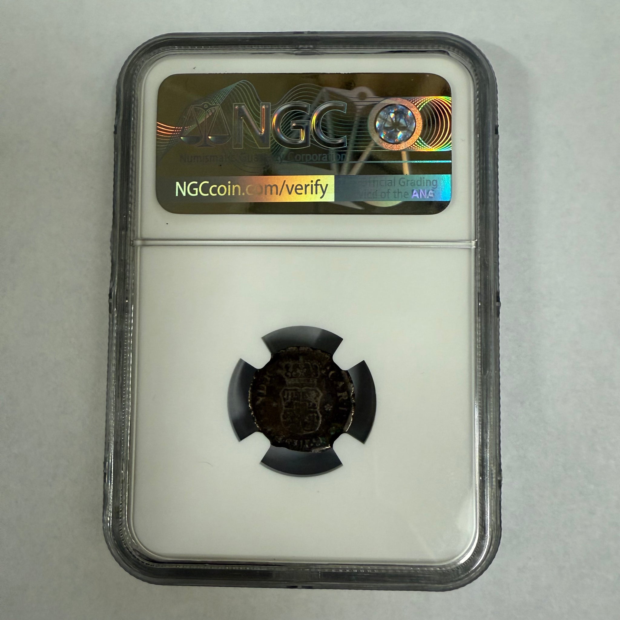 Denomination: 1/2 Reales Date: 1774 Reign: Carolus III Mint: Mexico Assayer: F.M. Weight: 1.45 gm Grade: NGC Genuine - 2172316-001 Mount: 14K gold History: The...