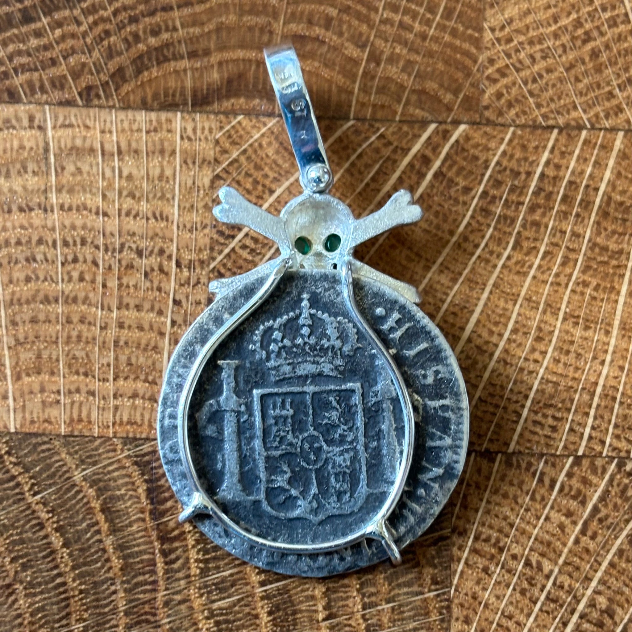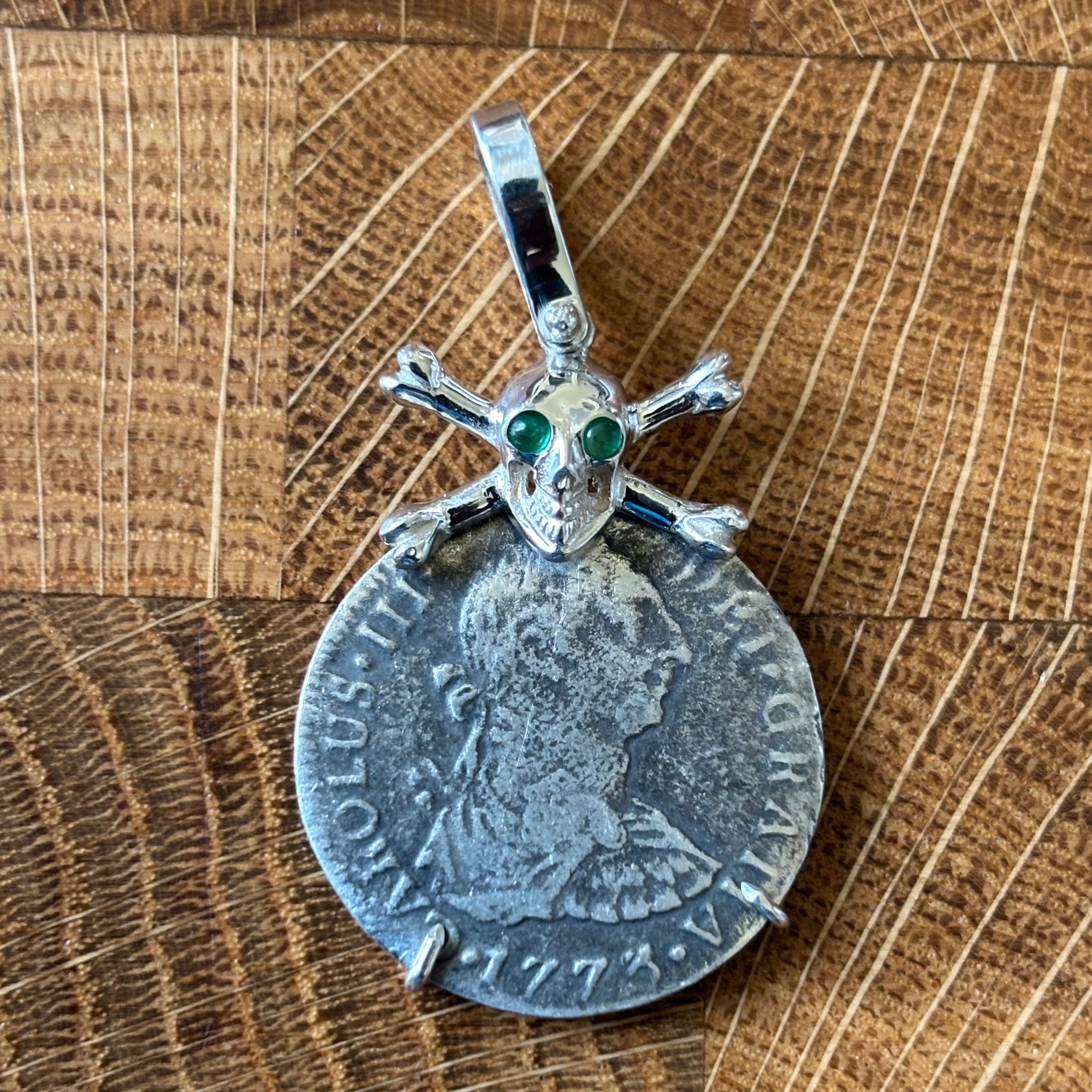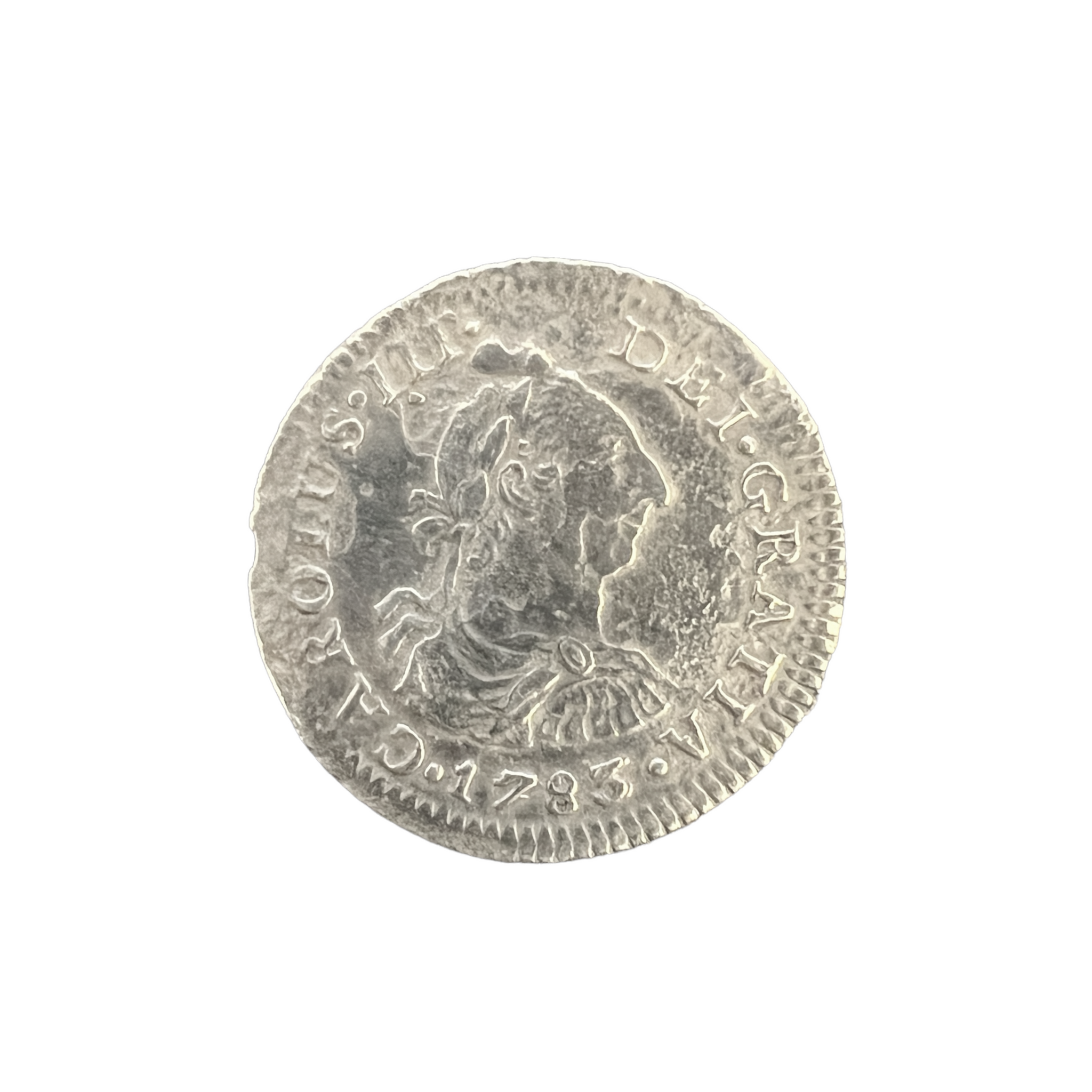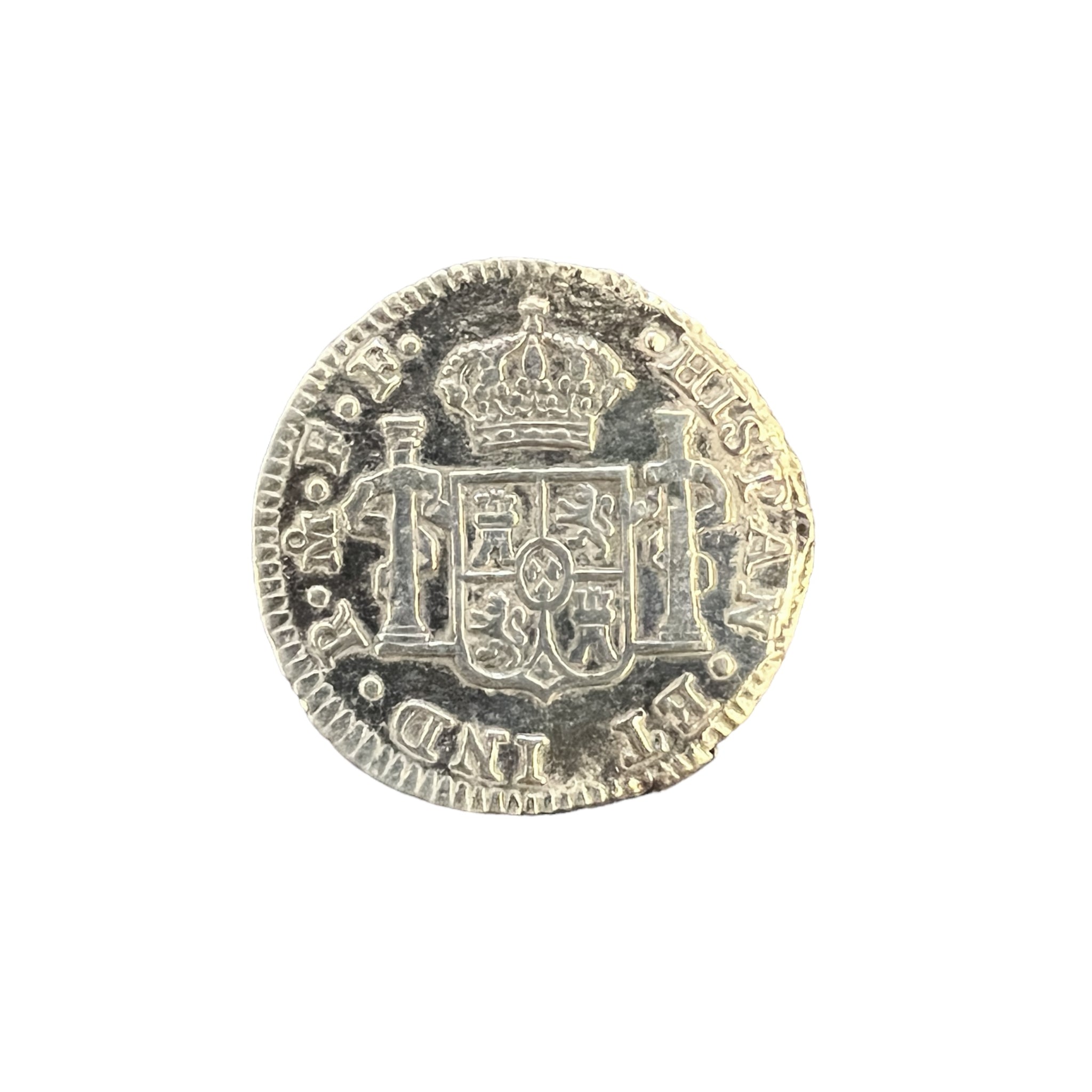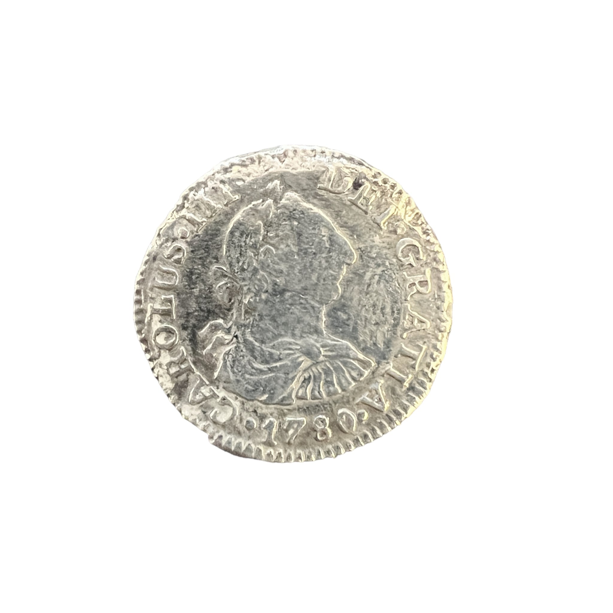 "The Shipwreck that changed the World" Denomination: 2 Reales Mint: Mexico Date: 1783 Assayer: FF Reign: Carlos III Weight: 5.3 grams Grade: Fine Plus Mount: 14K...