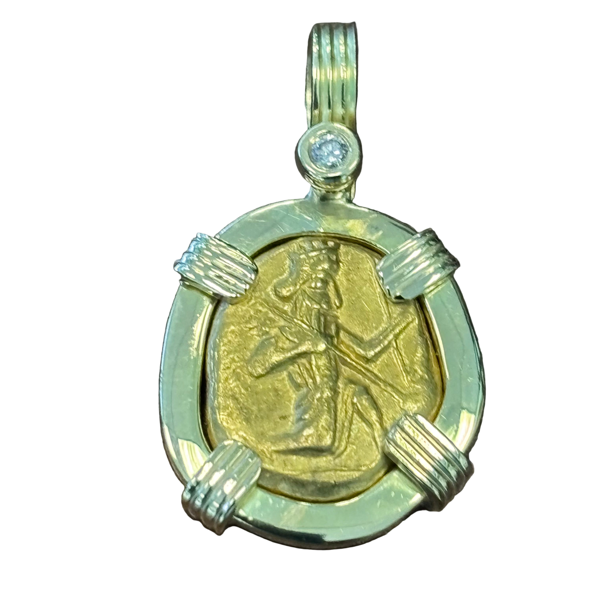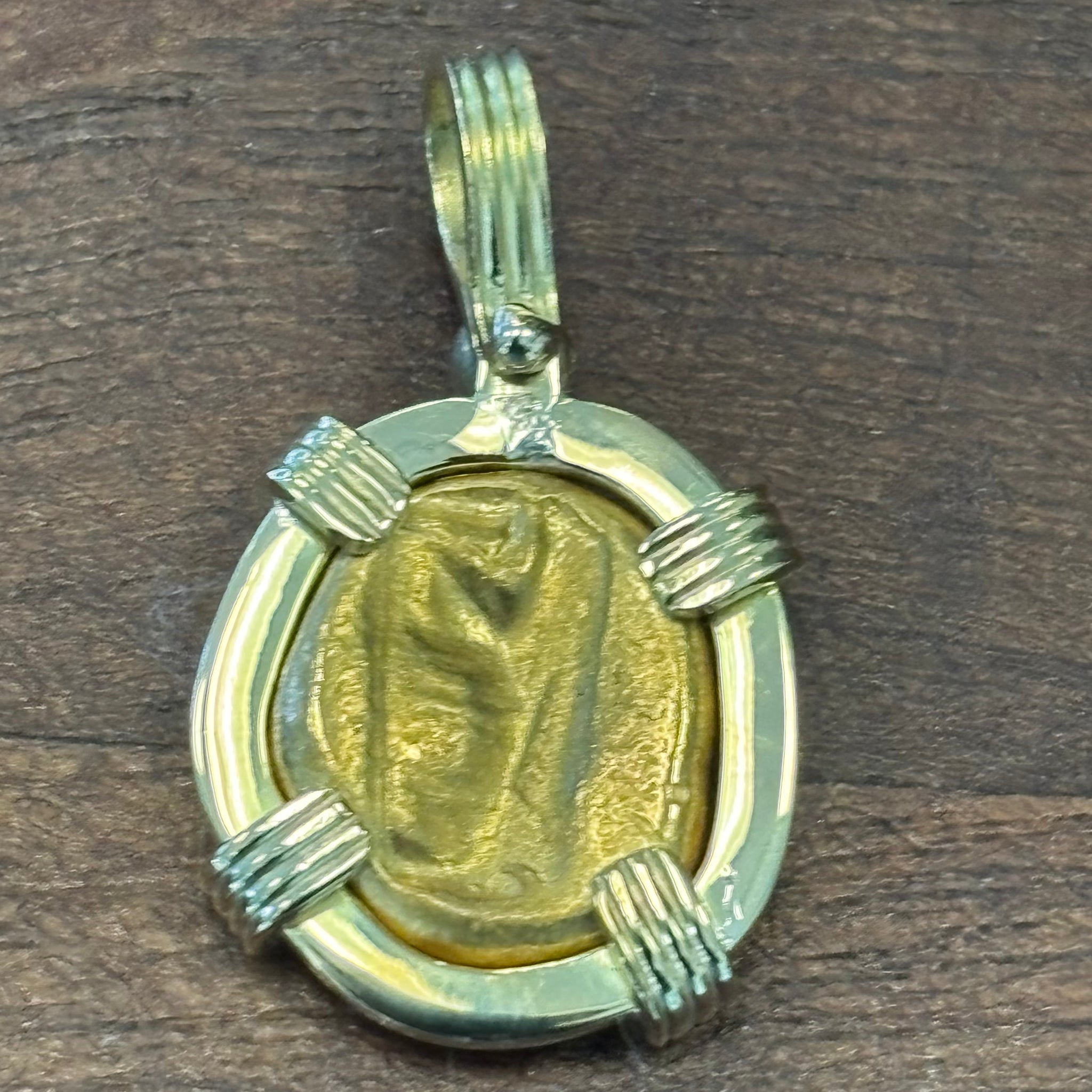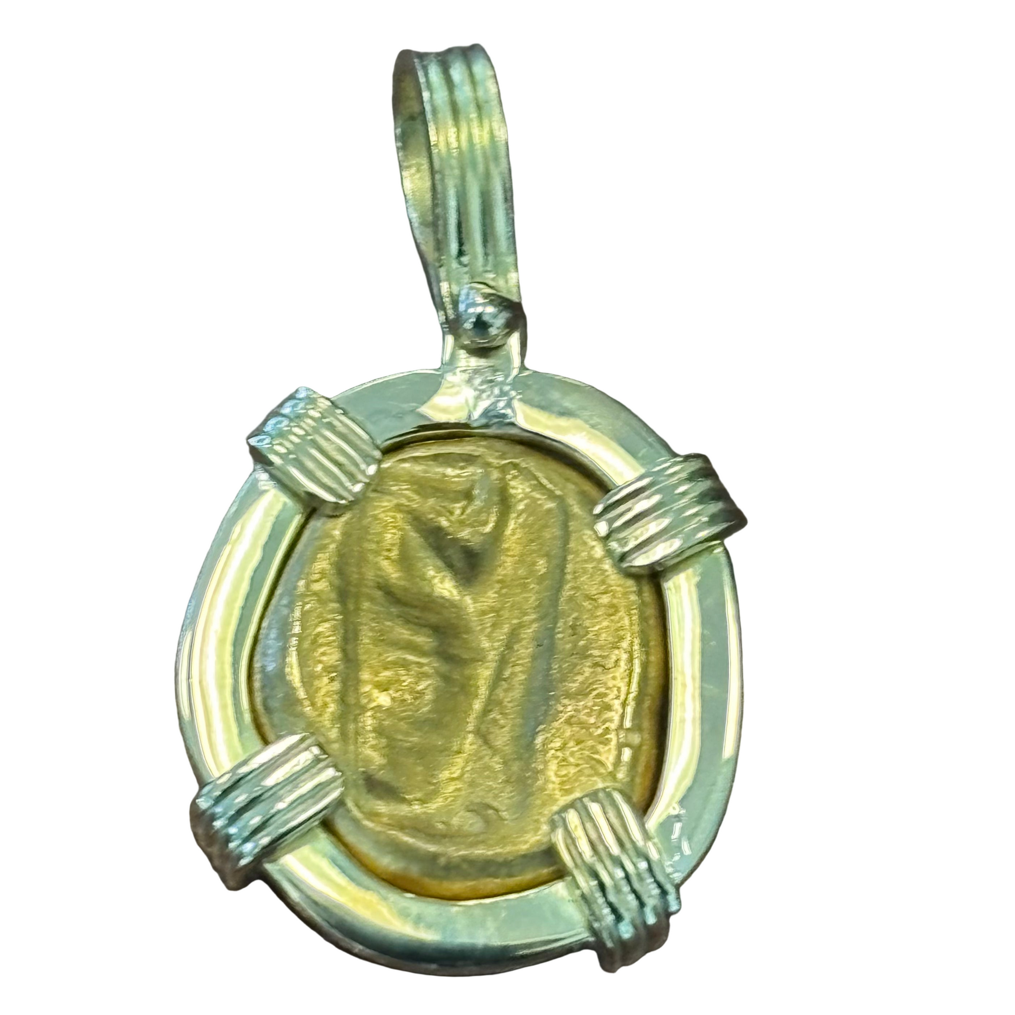 Denomination: AV Histamenon (Nomisma) Date: Circa –1028 – 1034 AD Mint: Constantinople Weight: 4.41 g Mount: 18 kt gold – accented with Blue Sapphire Grade: NGC 6324931-020...