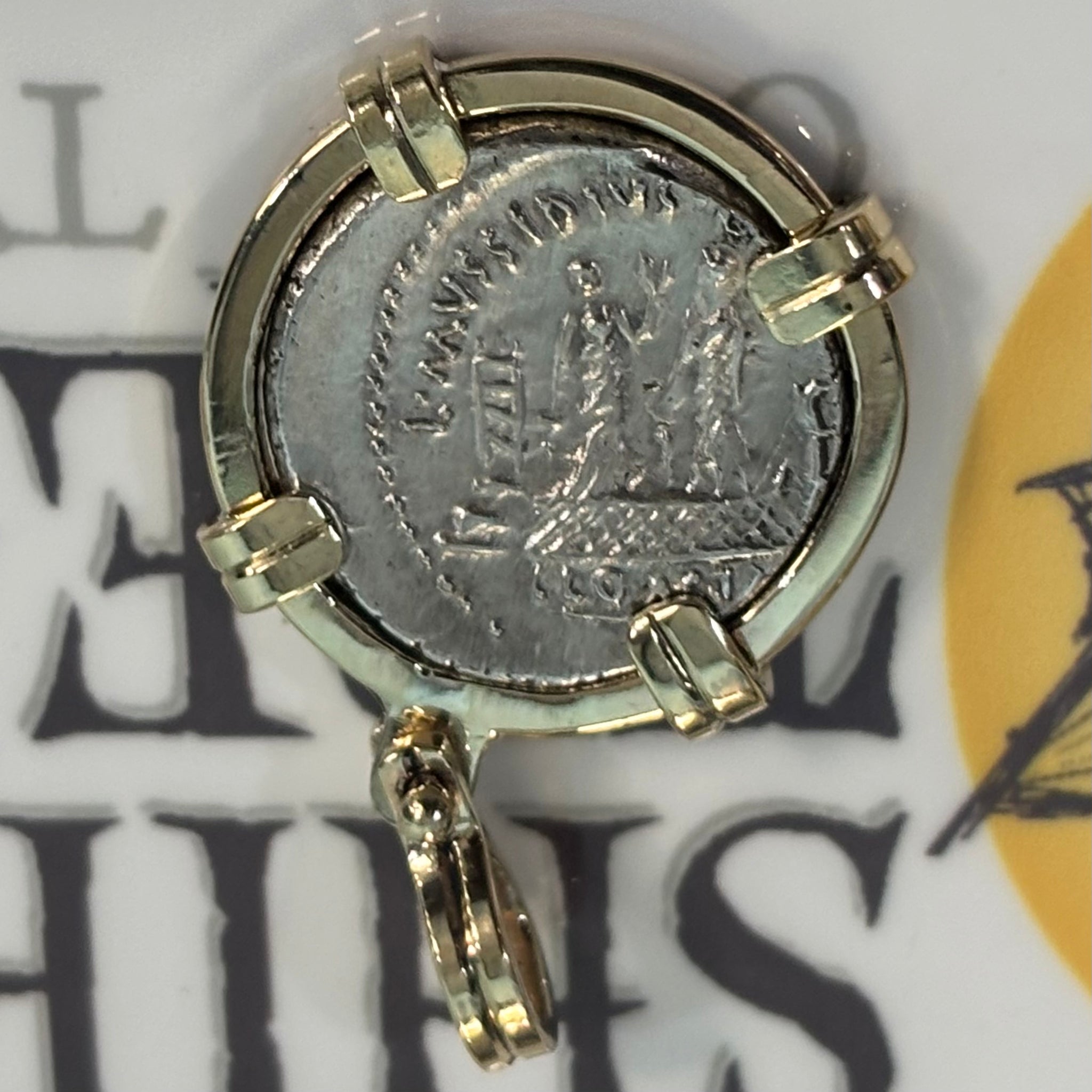 History: L. Mussidius Longus was a Roman Republican moneyer (triumvirate monetalisl) active around 42 BC. He was famous for the distinctive silver denarii he issued in Rome, featuring personal types like the Shrine of Venus Cloacina Concordia and portraits of Caesar; highlighting his family's potential connection to Rome's sewer system and the tumultuous post-assassination era under the Second Triumvirate (Antony, Octavian, Lepidus). His coins are significant as they show early republican coinage transitioning, with moneyers including personal symbols alongside triumviral figures.