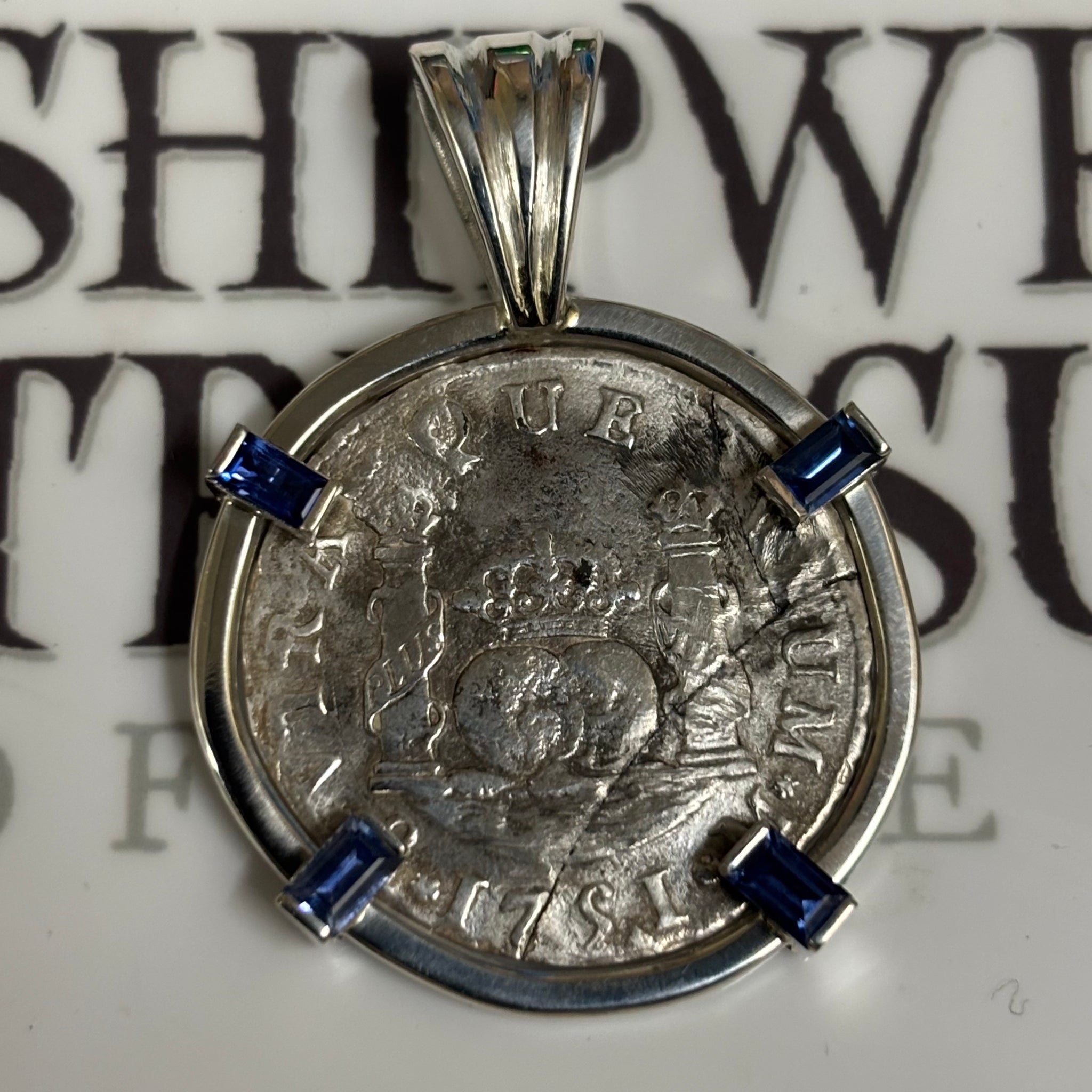 Description: Spanish Cob from the wreck of the El Cazador. Obverse: Crowned globe flank by Pillars on each side. Cracked across side of cob. Clear Legend and date of 1751. Reverse: Partially visible shield. Denomination 2 visible.