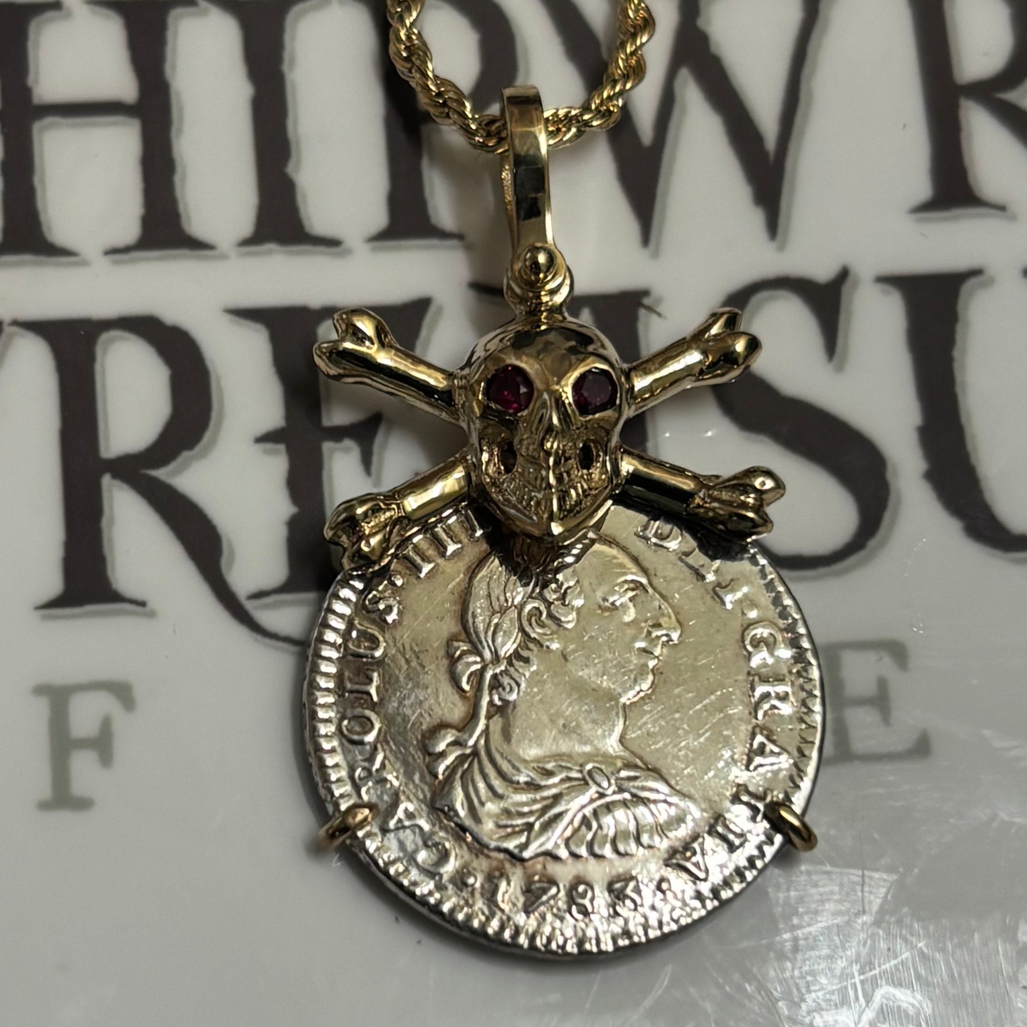 Mount: 14K gold Skull and Crossbones with Ruby eyes