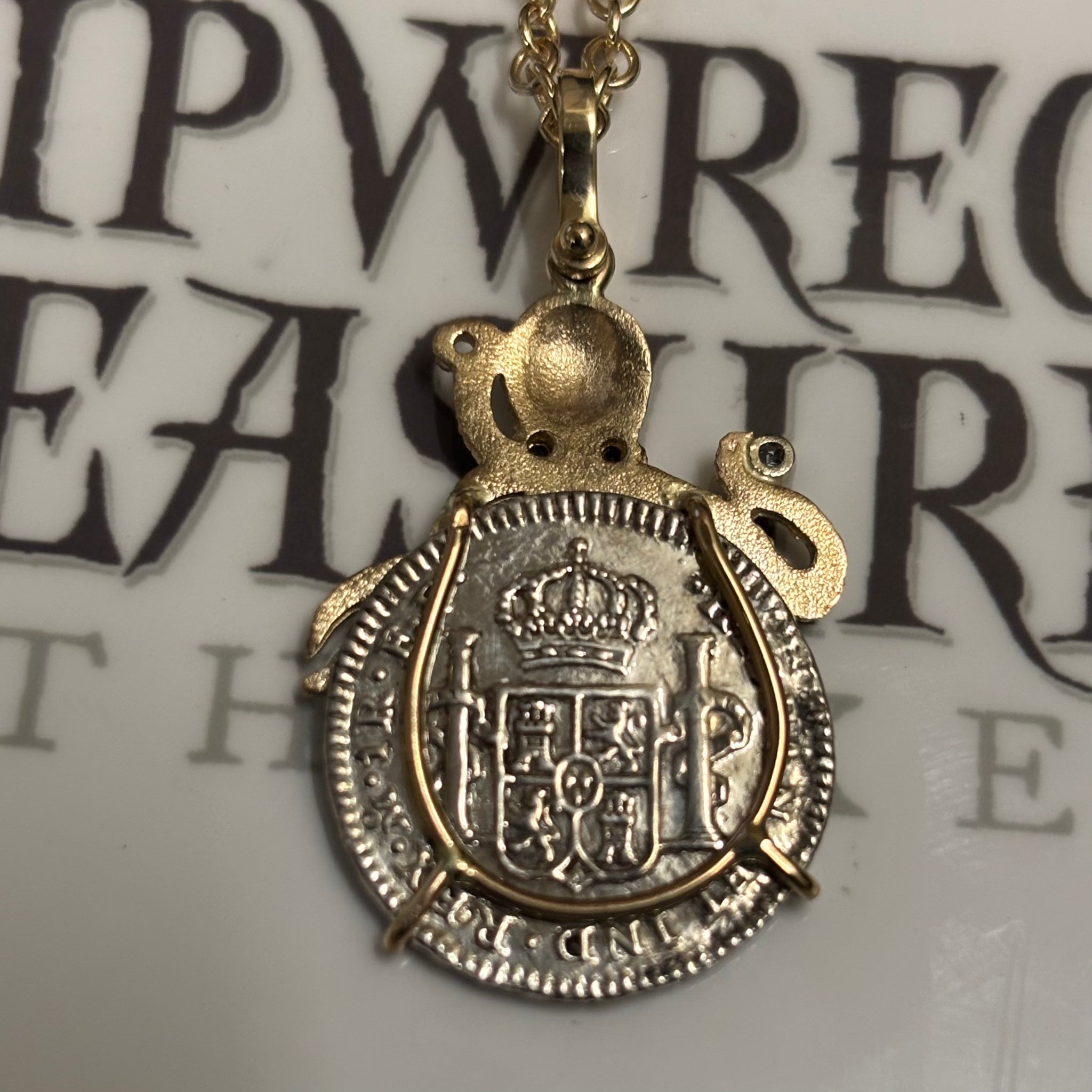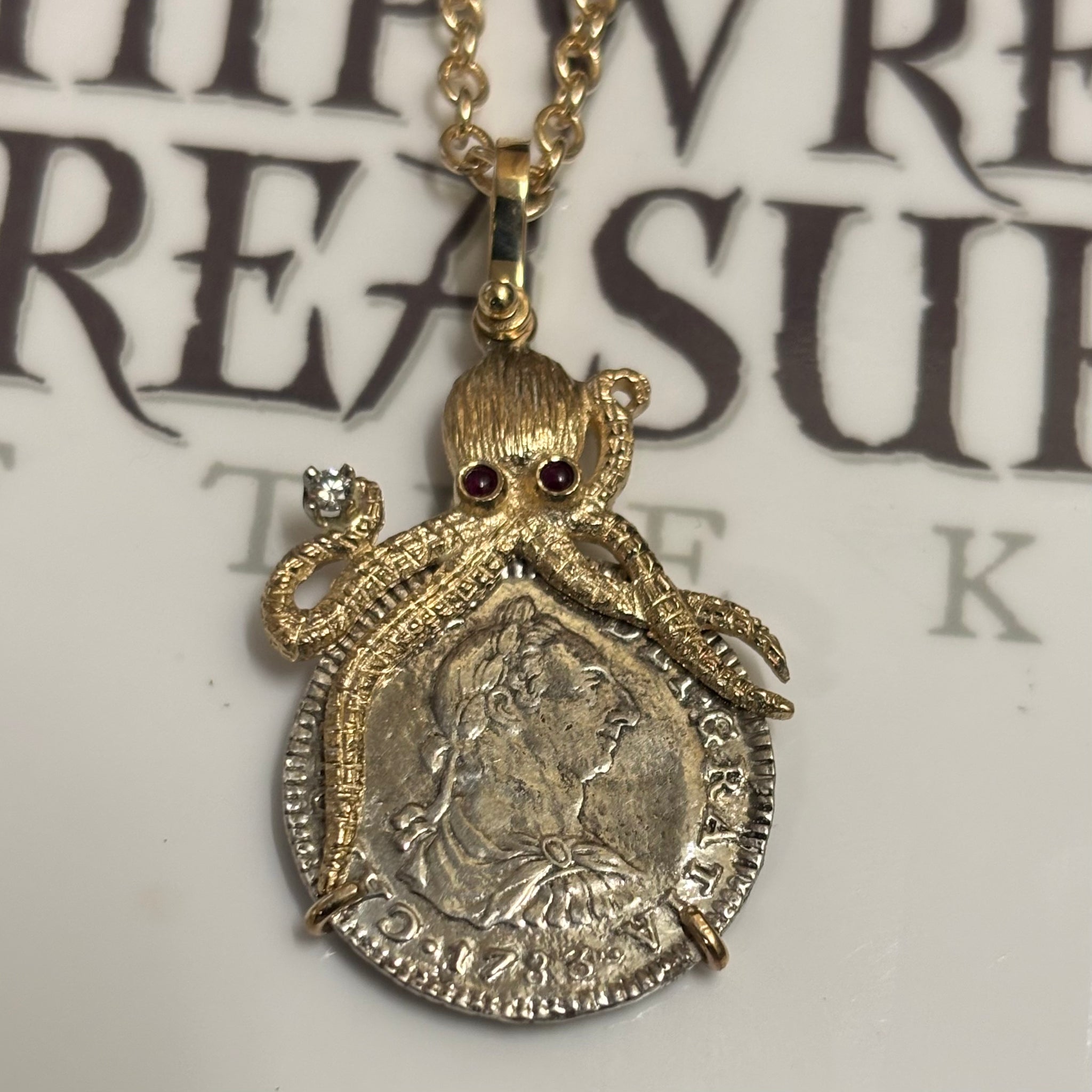Mount: 14K gold Octopus. Ruby eyes and .05CT diamond