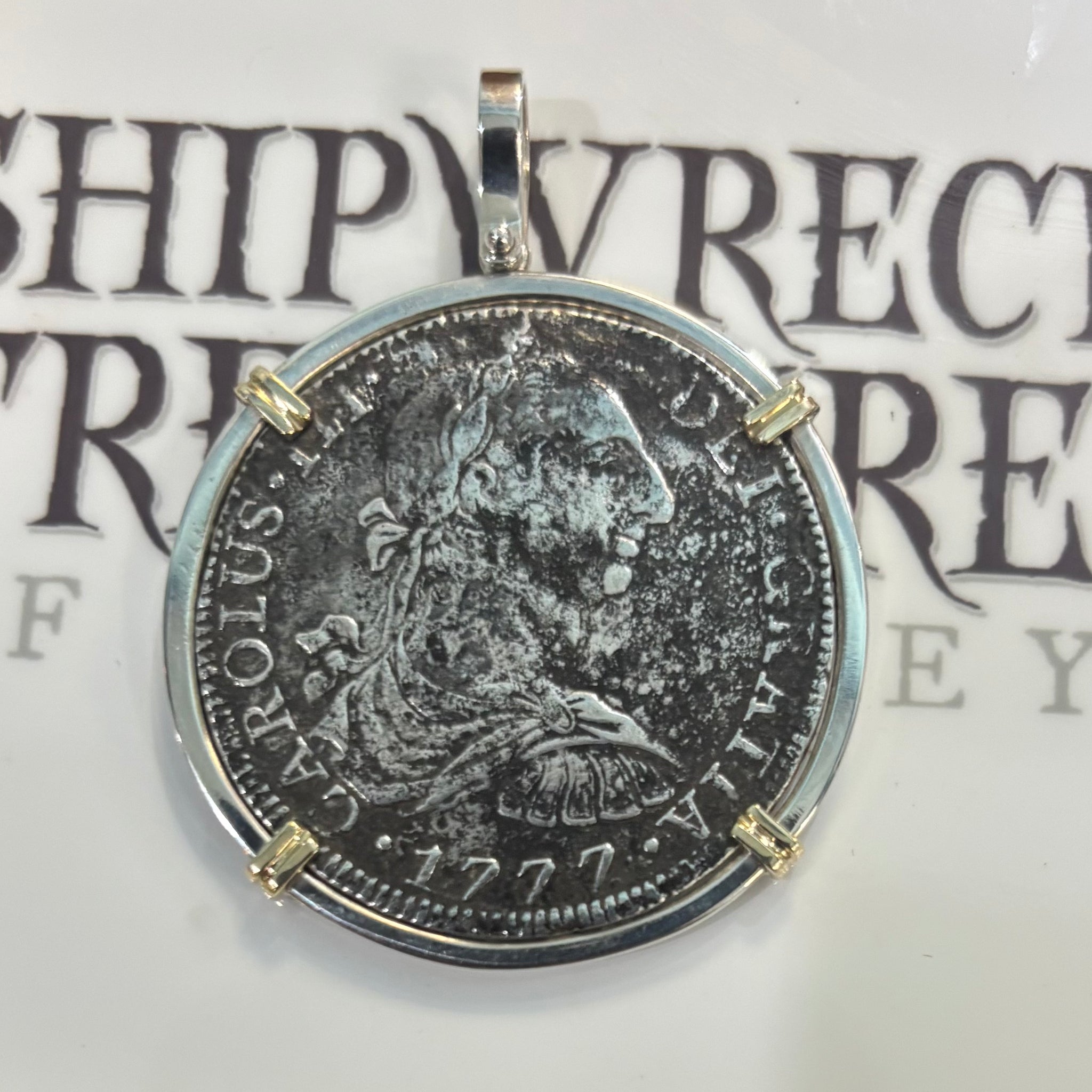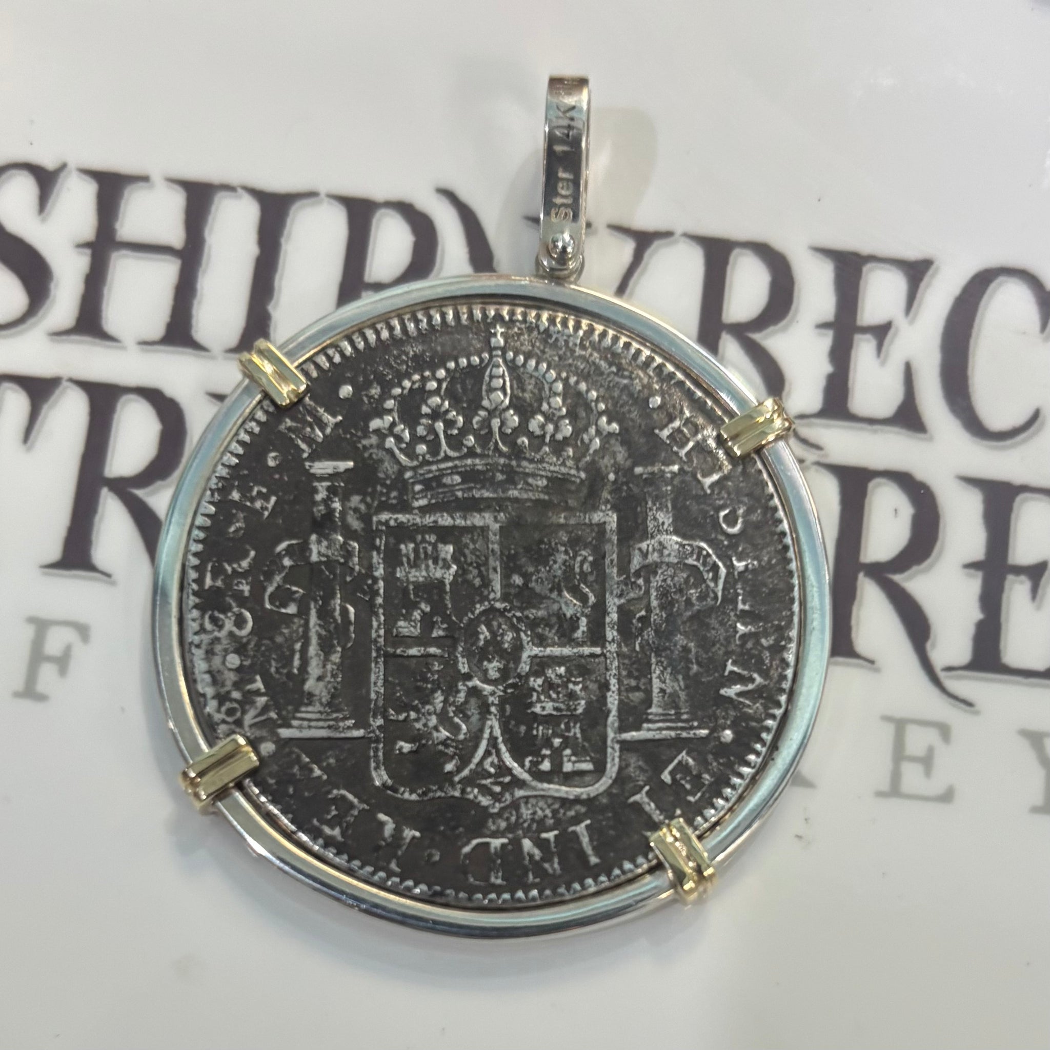 History: Sometimes called "The Shipwreck That Changed the World," the story of the ill-fated El Cazador really speaks volumes about early American History. In the 1770's, the Spanish controlled Louisiana Territory's economy was failing, and was heavily reliant on the arrival of Mexico-minted Spanish coins to help boost the economy. Charles III of Spain ordered Captain Gabriel de Campos y Pineda to sail the Spanish brig of war, El Cazador (The Hunter), to Veracruz, New Spain (present day Mexico), on October 20, 1783. There, she was loaded with silver Spanish coins, mostly 8 Reales, the largest coin by size and weight that Spain had minted. On January 11, 1784, El Cazador set sail for New Orleans and was never heard from again. Some historians speculate that had El Cazador made it to New Orleans, and its treasure been able to bolster the economy, Spain might not have given the territory back to France in 1801. And, in turn, the United States would not have been able to acquire it for 15 million dollars in 1803 from the French. Two hundred years later, about 50 miles South of Louisiana in the Gulf of Mexico, a butterfish trawler, was fishing in 300 feet of water when its net snagged something on the bottom. It was August 2, 1993. Captain Jerry Murphy and his crew held their breath as they retrieved the net to examine it for damage. When they pulled up the net up and dumped the contents on the deck, then someone yelled "COINS, COINS, COINS!!!"