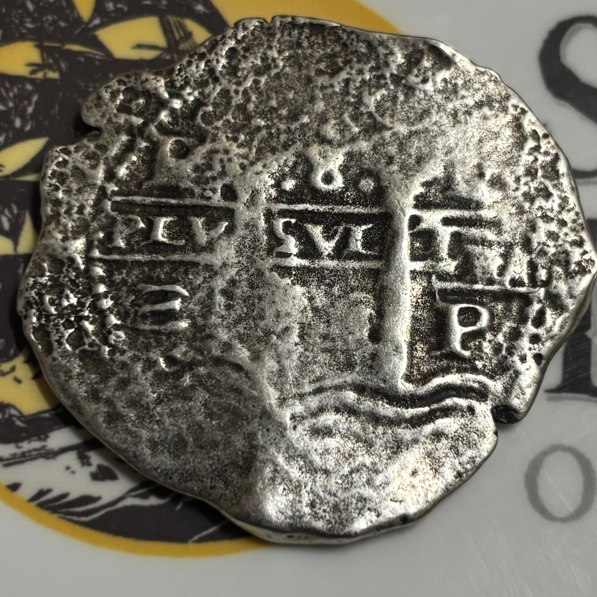 History: La Capitana sank in October of 1654 off the coast of Chanduy, Ecuador. The 1,200 ton Spanish galleon was the largest built in Colonial American during the 17th century, and the flagship of the Viceroyalty of Peru and the South Sea Armada. This ship was commissioned to carry Spanish coins including the Potosi Mint scandal coins, the subsequent countermark coins and many other dated from 1649-1654.