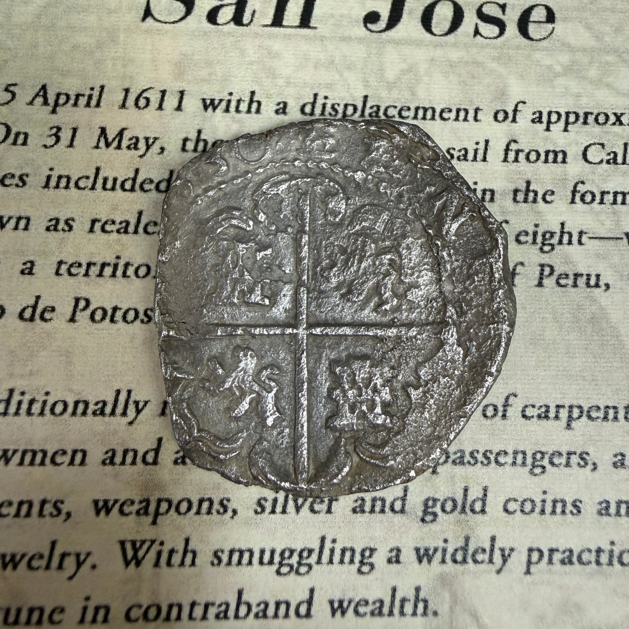 The San José, named for the patron saint of carpenters, immigrants and the New World, sailed with a complement of 106 crewmen and at least as many passengers, along with their own personal wealth, which included navigational instruments, weapons, silver and gold coins and bullion, tableware and ornaments, and magnificent gold and gemstone jewelry. With smuggling a widely practiced tradition, the San José also carried an additional and very substantial fortune in contraband wealth.